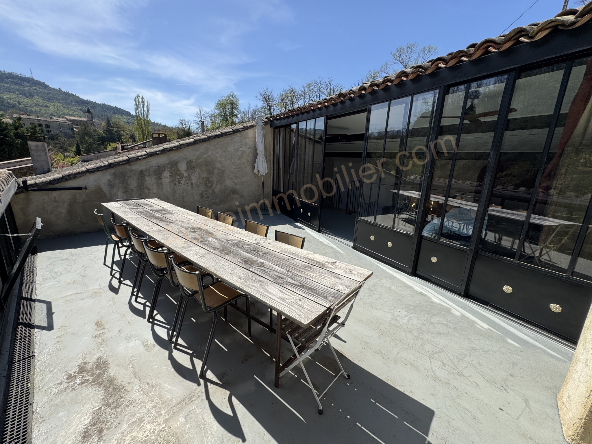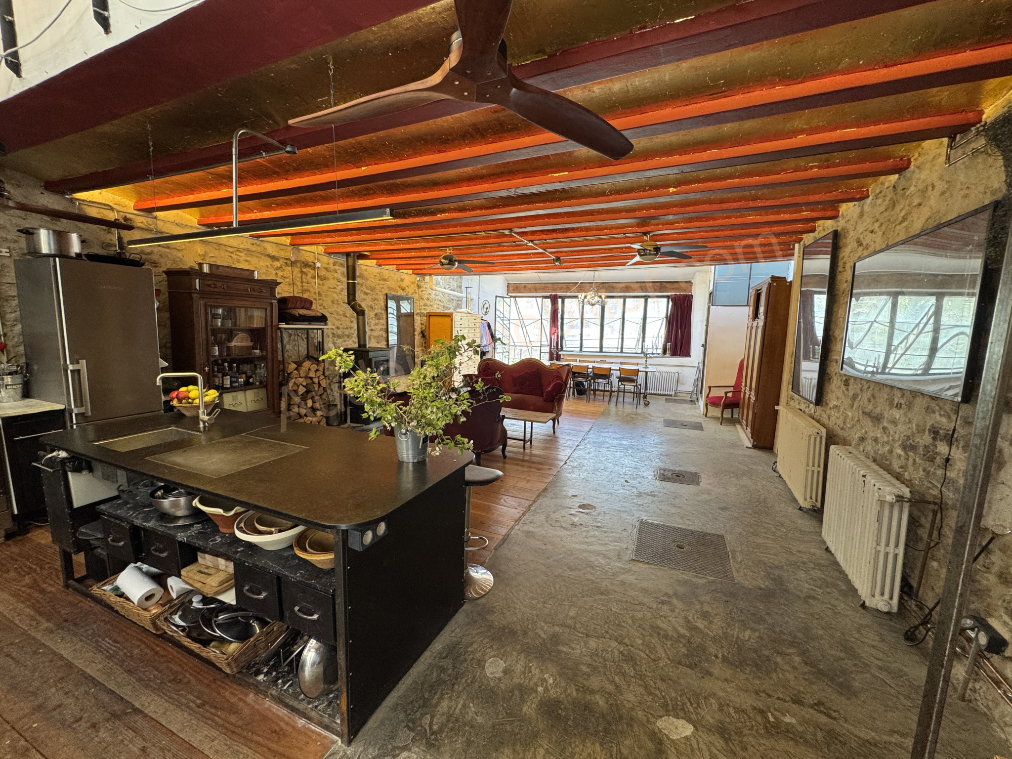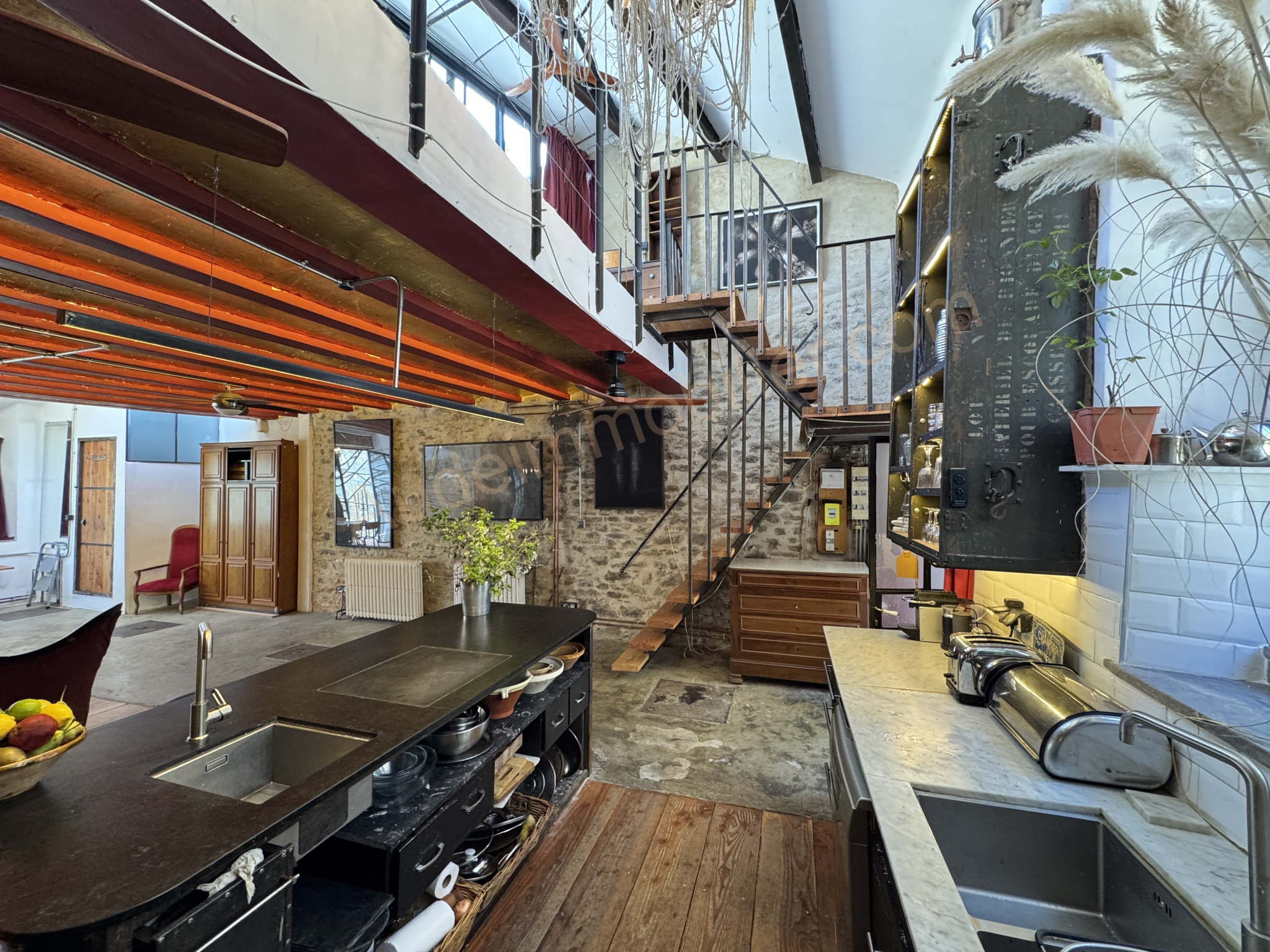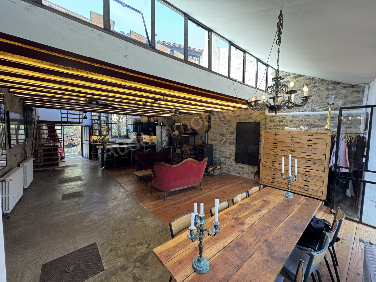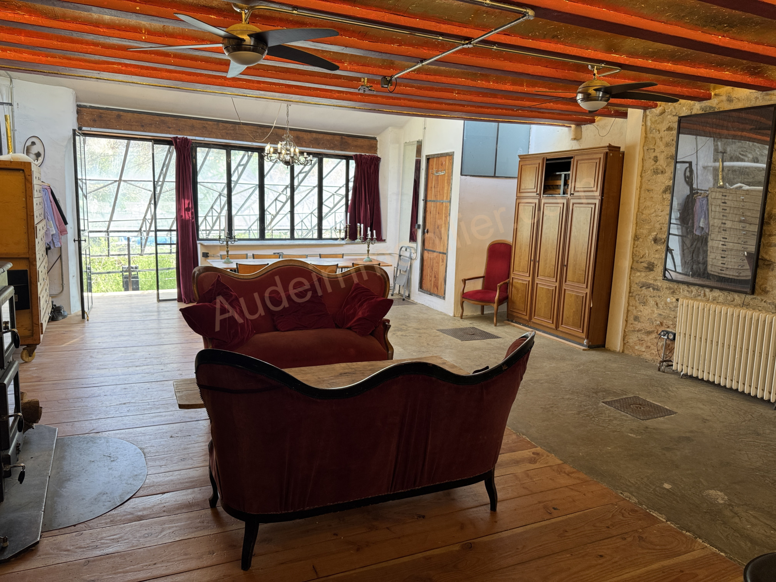 Située dans un village à 10 minutes au Sud de Limoux, maison de village en pierres, atypique style "loft New-Yorkais" avec terrasse. D'une surface habitable de 143,5m², cette maison, ancienne cave viticole, se compose : En-rez-de-chaussée : un grand séjour / salon / cuisine aménagée de 68m², une salle d'eau/WC. A l'étage une mezzanine de 12,5 m² à usage de chambre ouvrant sur terrasse de 27m² avec vue panoramique sur la campagne. Au-sous-sol / rez-de-rue : une véranda/terrasse de 24m² ouvrant vers une pièce de 39m² avec 3 anciennes cuves ouvertes et aménagées, un WC avec douche.