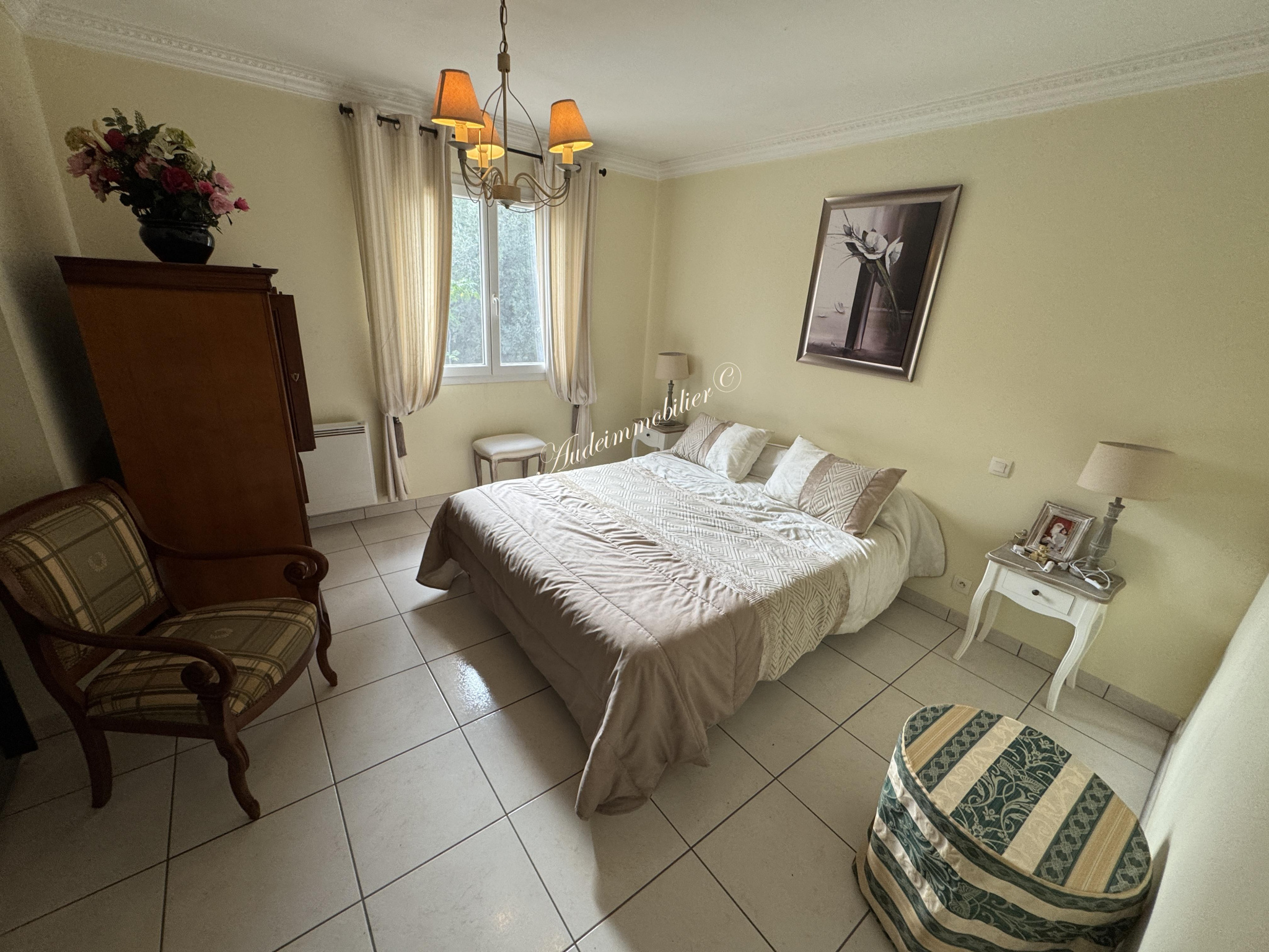 Située dans un quartier calme de Limoux, ville tous commerces et services, villa de plain-pied avec piscine, bâtie sur une parcelle de 1092m². D'une surface habitable de 137m², cette maison se compose de : une entrée, un WC avec lave-main, un placard, un séjour / salon de 43,8 m², une cuisine aménagée de 13,5m², un couloir, une chambre de 14,3 m², une chambre de 13m², une salle de bain avec WC, une chambre de 14,4m², une chambre de 13m², une salle d'eau, un garage. A l'extérieur une piscine de 9m x 4,5m et une terrasse couverte de 12m²