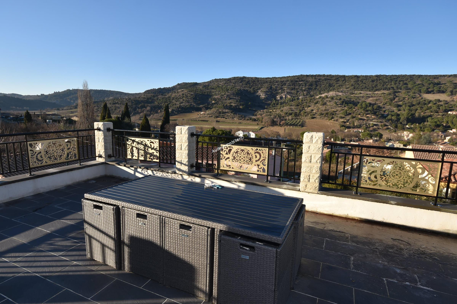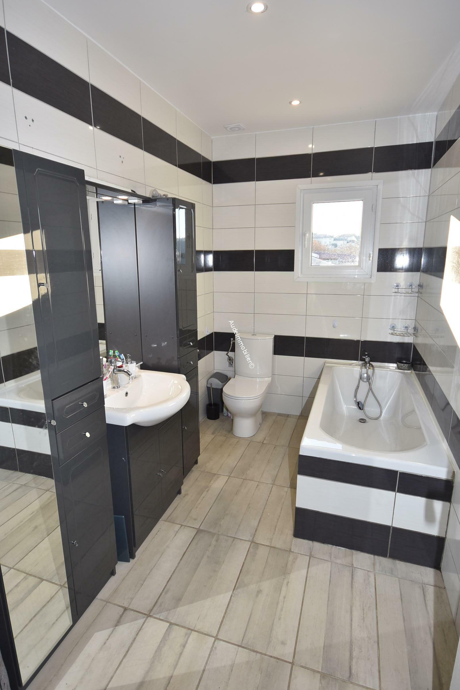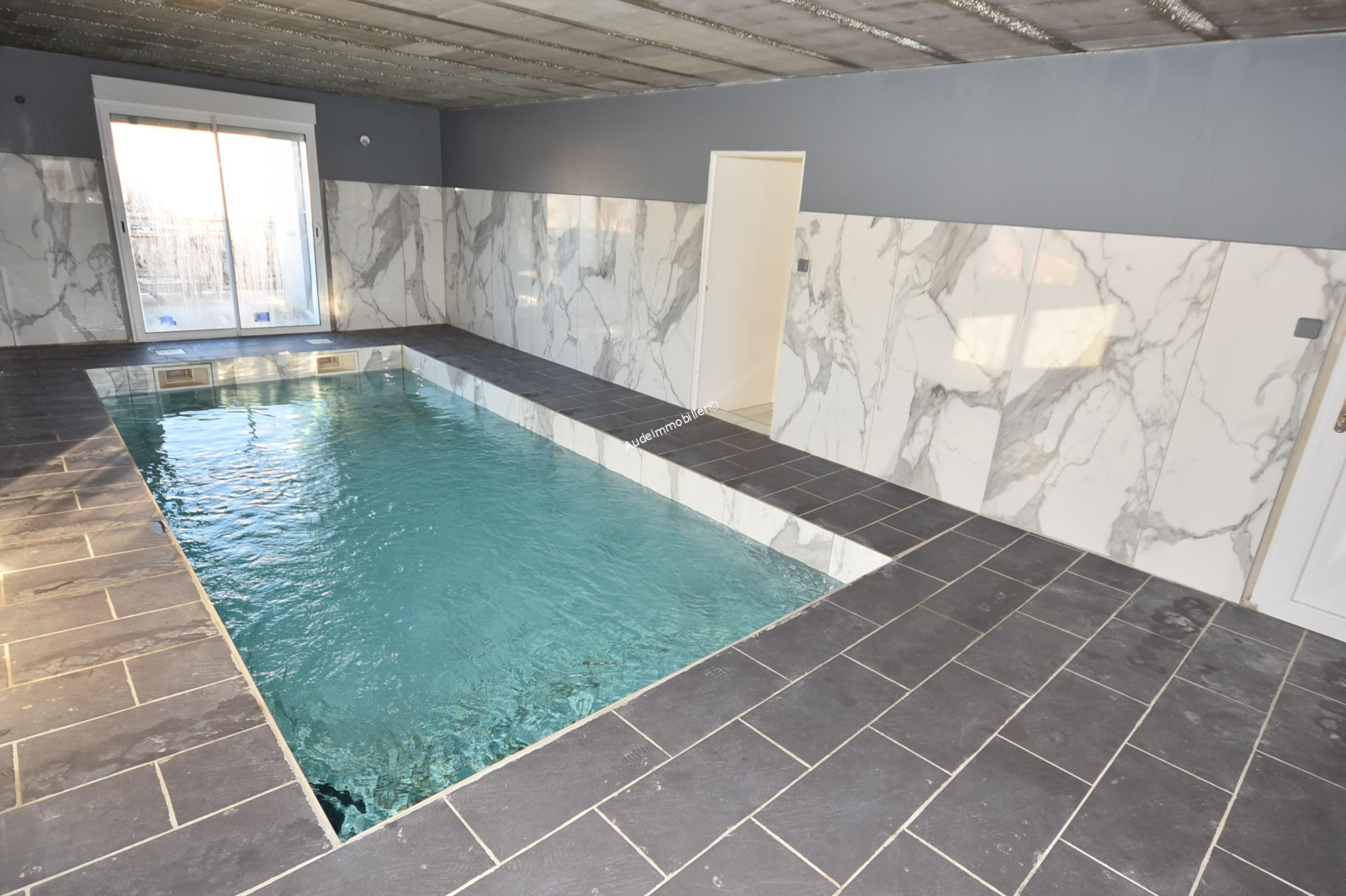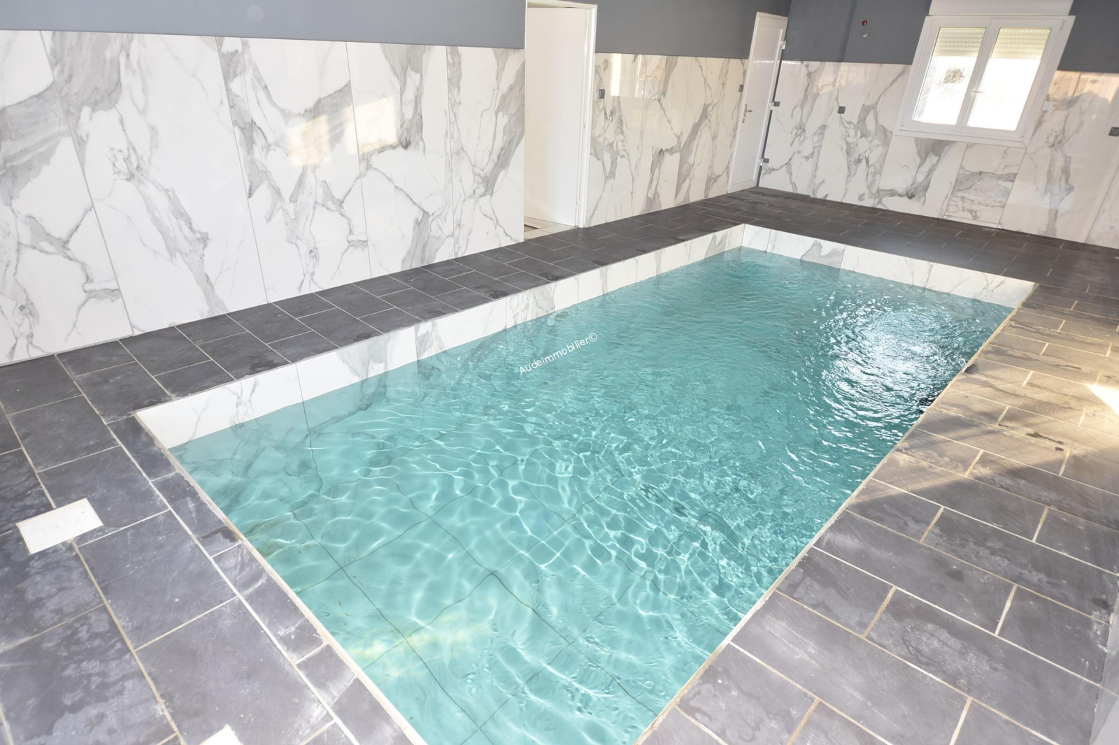 Située dans un village à 3 minutes de Limoux et de ses commerces, villa récente avec jardin et piscine intérieure construite en 2021 sur un terrain de 794 m². D'une surface habitable de 151 m², cette maison se compose de : au rez-de-chaussée : une entrée, un séjour /salon de 28 m², une, salle d'eau avec WC, un couloir, une cuisine aménagée et équipée, une chambre en suite de 17,86 m² avec salle d'eau et WC, une arrière-cuisine (dans l'ancien garage) de 13,88 m², une pièce de 40,47 m² où se situe une piscine intérieure de 6 *3 m ouvrant vers une terrasse de 13 m². Au 1er étage : un couloir, une chambre de 15 m² avec placard, une chambre de 9,56 m² avec placard, une chambre de 9,81 m² avec placard , une chambre de 15,35 m² avec placard, une salle de bain avec WC et une terrasse de 45,54 m².