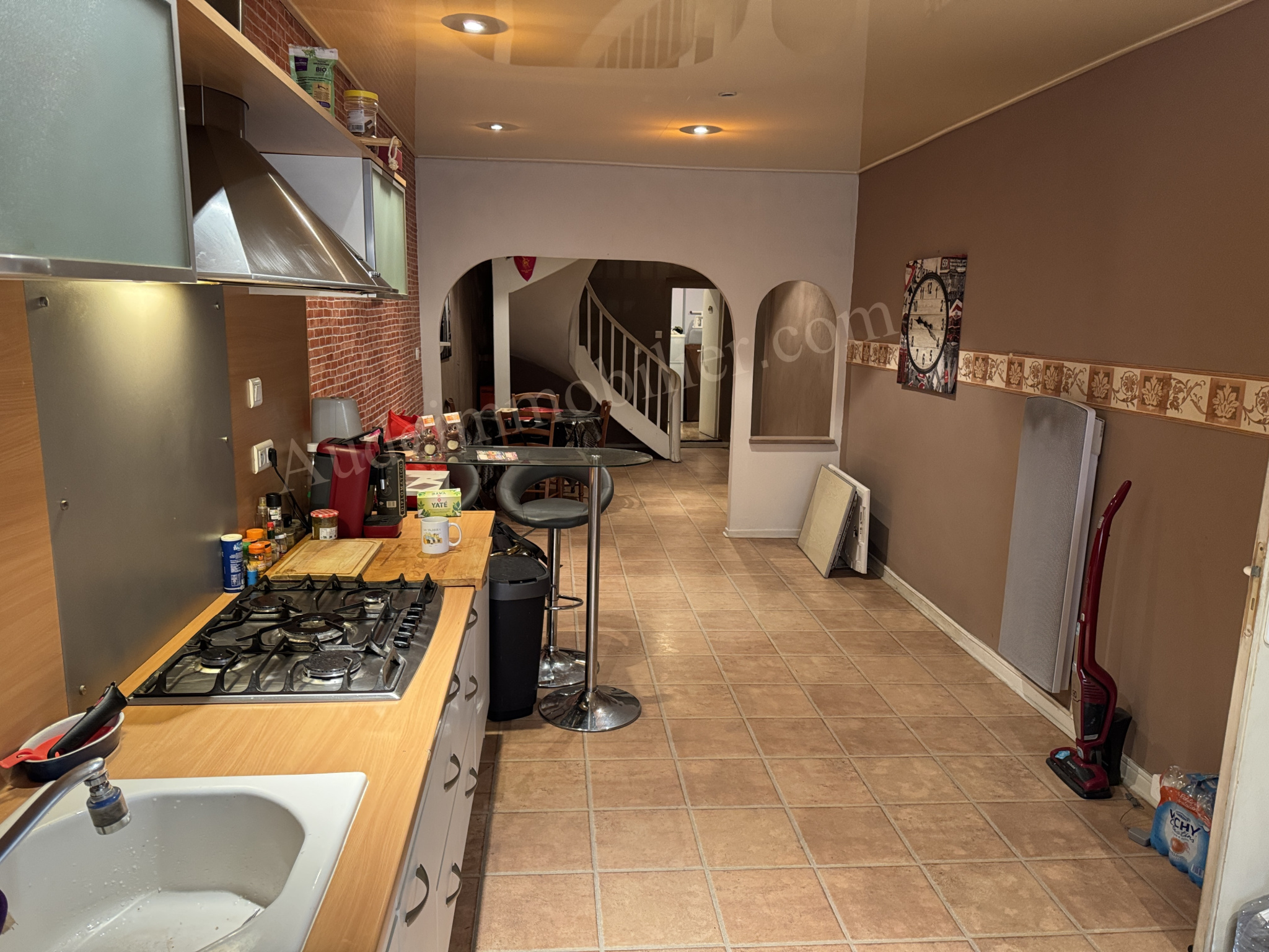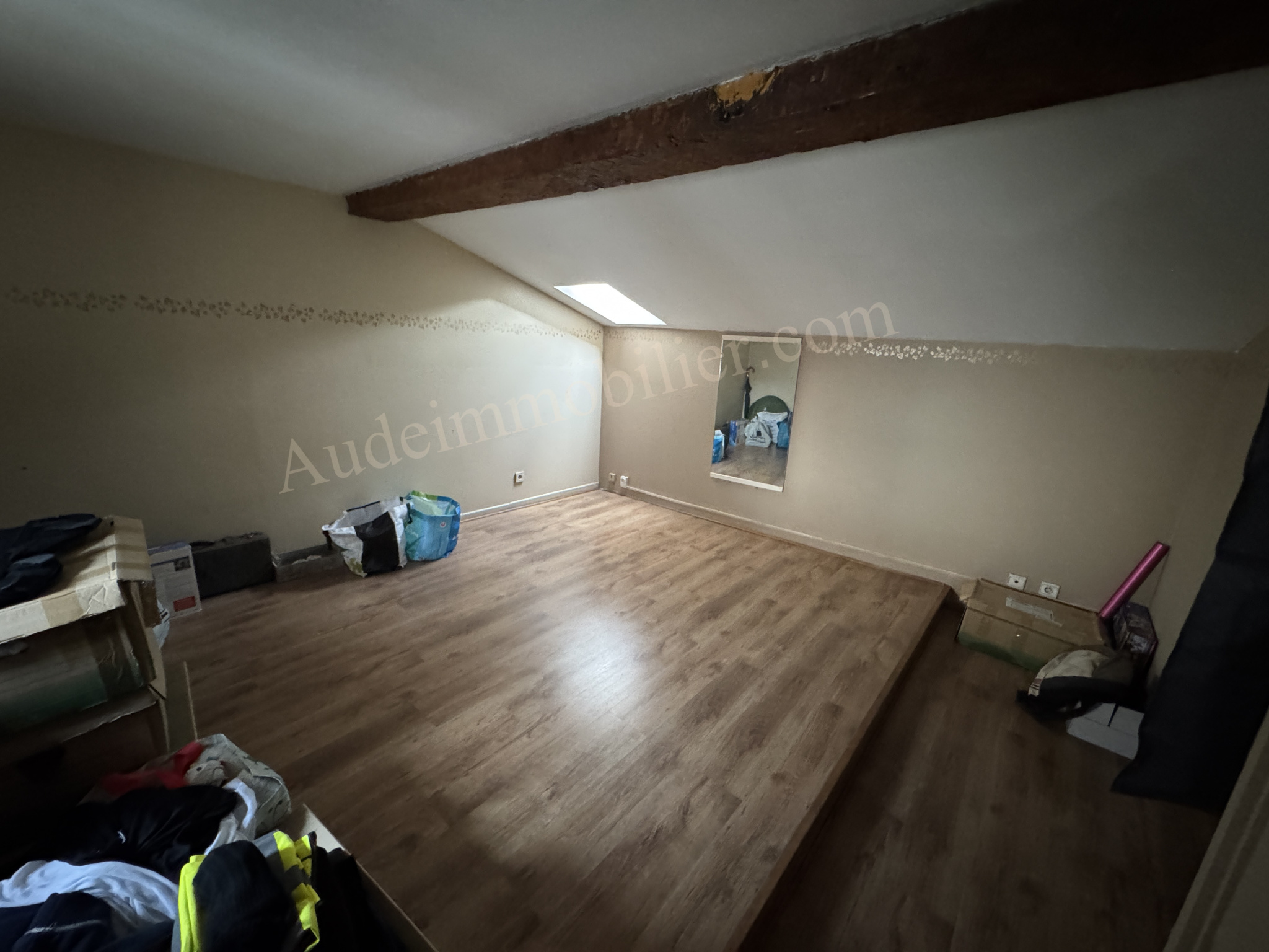 Situé à Limoux, dans une rue commerçante du centre-ville, à deux pas de la place de la République, cet immeuble comprend un commerce au rez-de-chaussée et un appartement à l’étage. D’une surface habitable de 178 m², l’appartement, situé au 1er étage en duplex, se compose de : une pièce de travail/bureau de 40 m², un cellier, un séjour avec cuisine de 32 m², ainsi qu’une buanderie avec WC de 8,60 m². Au 2e étage : un palier, un salon de 27 m², une chambre de 13,59 m² avec dressing de 5 m², un couloir de desserte, une seconde chambre de 12,33 m², ainsi qu’une salle de bains avec WC, douche et baignoire. Au dernier étage : une chambre mansardée de 16,9 m² avec placard.