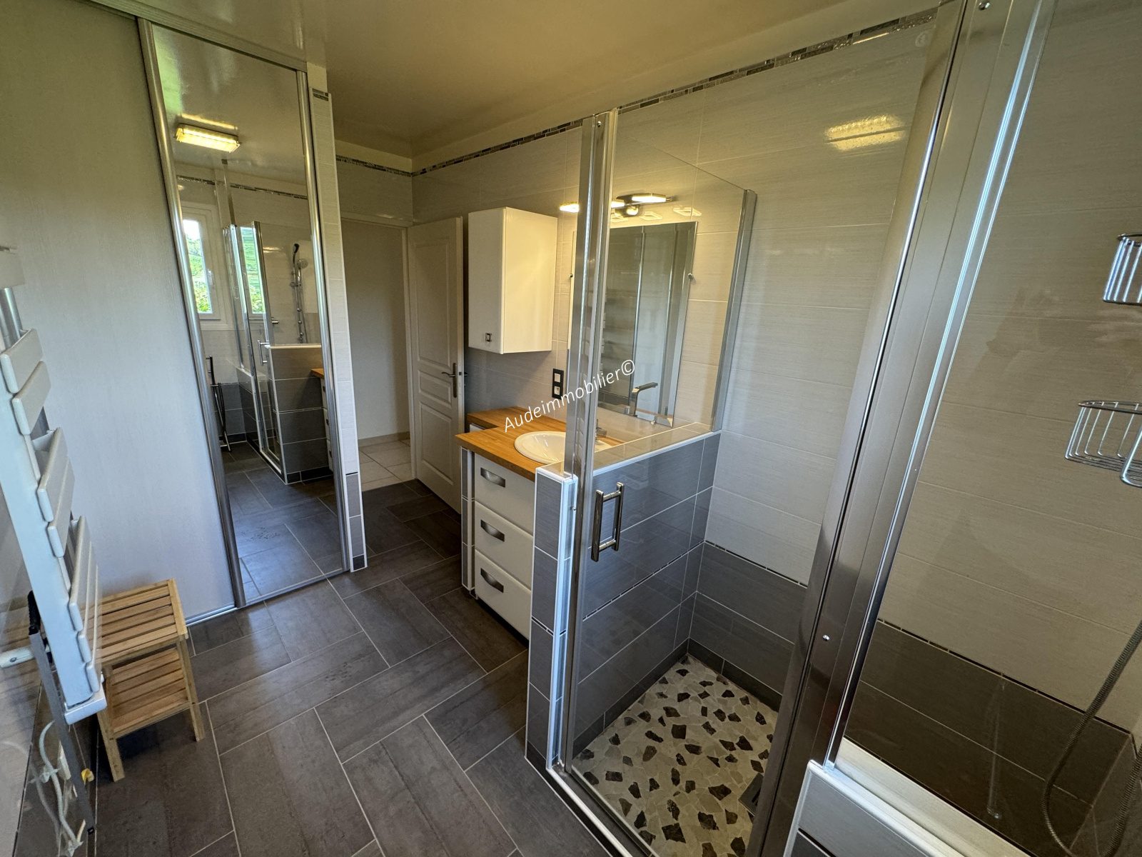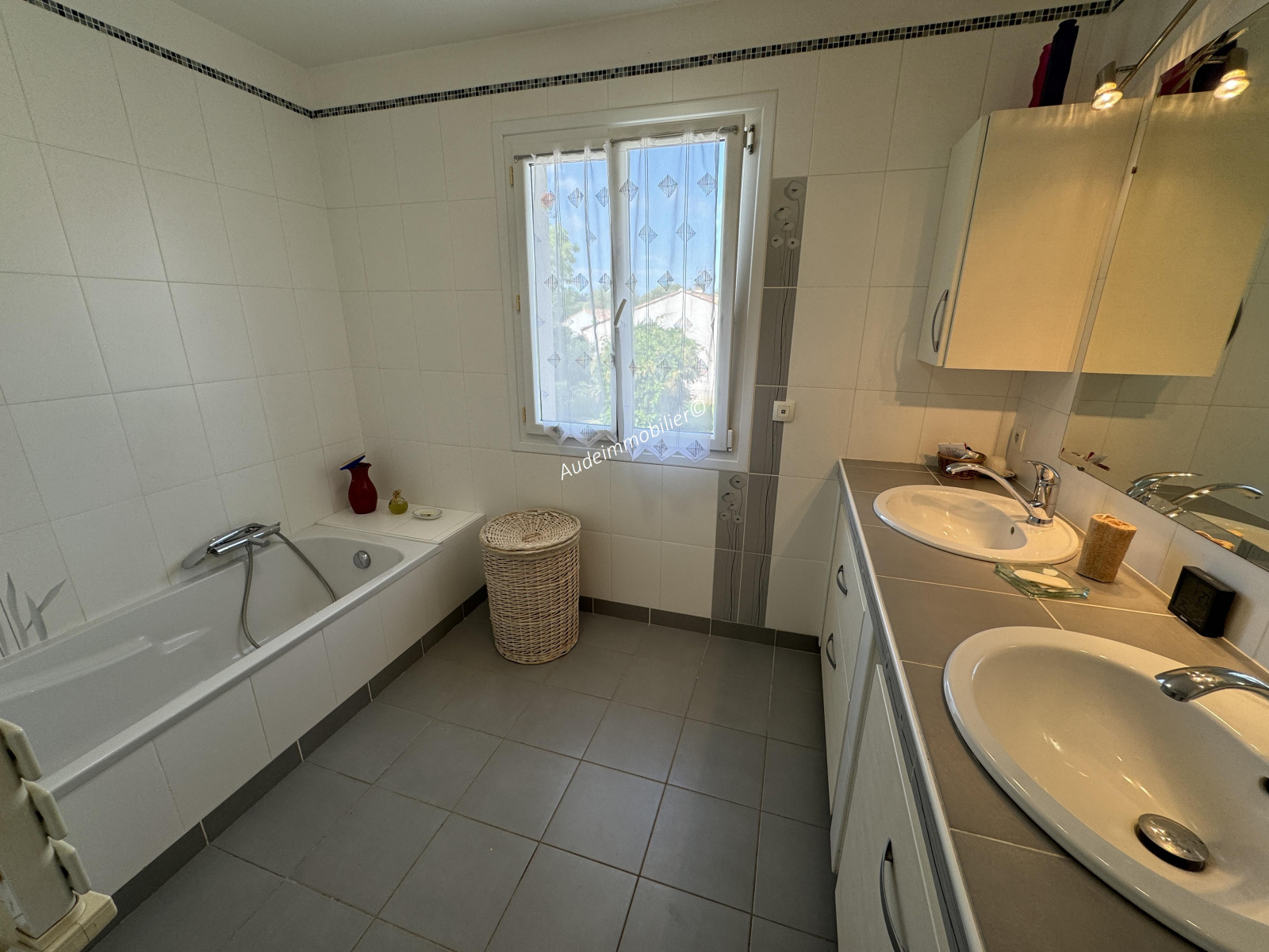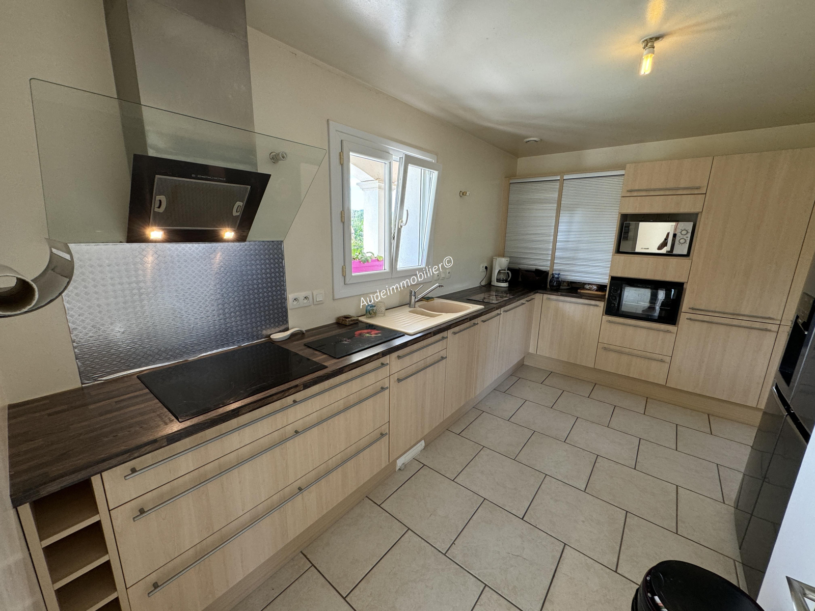 Située dans un village avec commerces et services de l'Axe Limoux/ Toulouse, à 15 minutes de Limoux, villa récente de plain-pied, sur un sous-complet, avec une piscine, un double garage de 89 m², un grand jardin. D'une surface habitable de 185m², cette maison se compose de : une entrée ouvrant sur un séjour / salon de 85,65m², une cuisine aménagée de 11 m², un couloir avec placard, un WC avec lave-main, une chambre de 14m² avec placard, une chambre de 14,3 m², une salle de bain, une chambre de 13,2 m², un WC, un e chambre à usage de bureau de 16,62 m². Au sous-sol : un garage de 89 m² avec deux portails électriques, une pièce de 23,69 m², une pièce de 26,6 m², une pièce de 26,4 m², une pièce de 23,5 m² et un espace avec une cuve de récupération des eaux de pluies de 3000L, un WC, un raccordement lave-linge. Le cumulus thermodynamique est également alimenté par les panneaux solaires, la maison est entièrement climatisée.