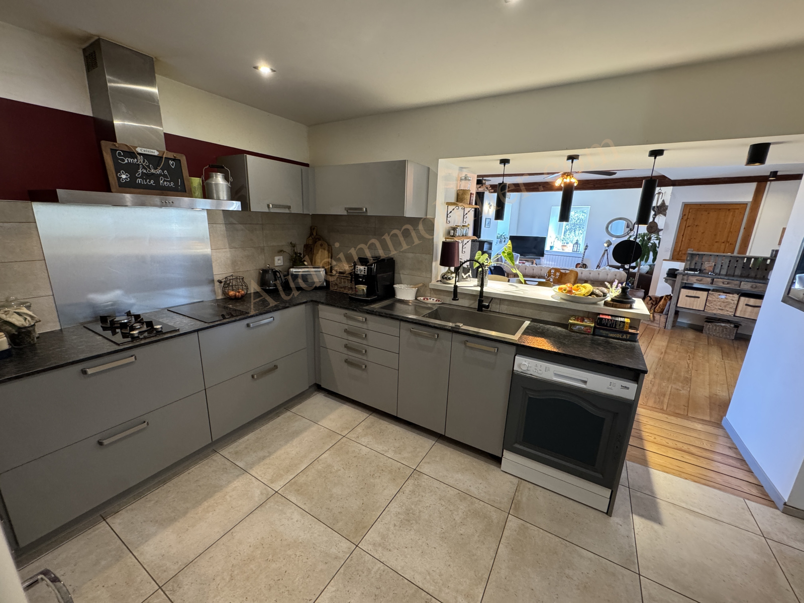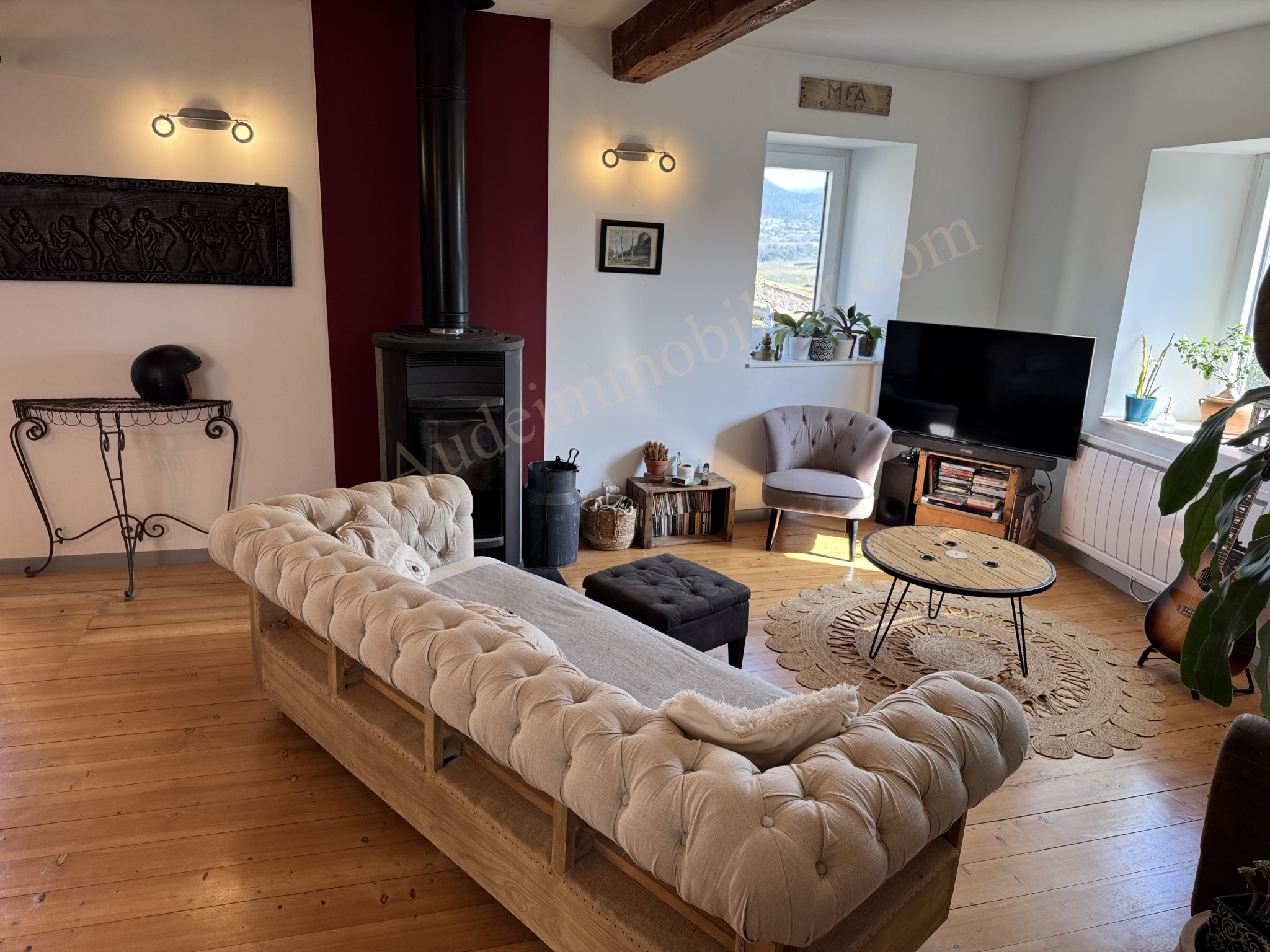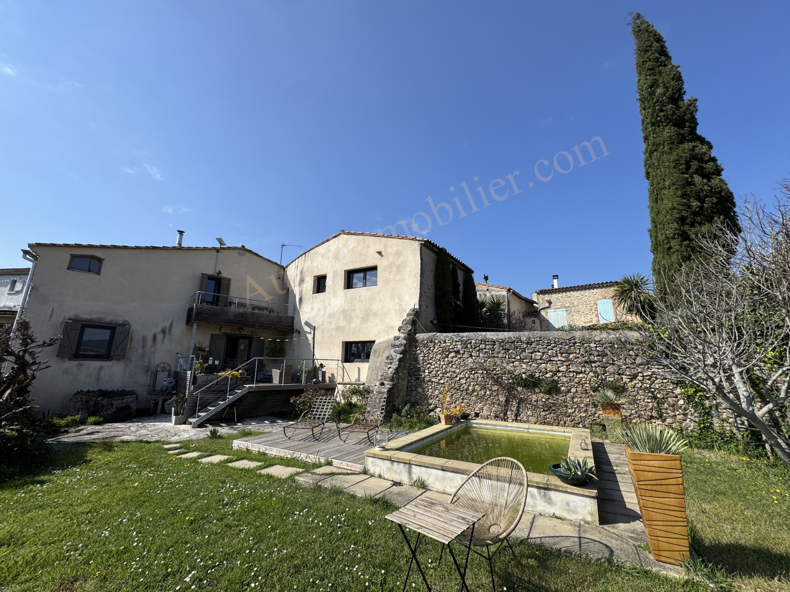 Située dans un village à 15 min. Carcassonne, ville touristique et de son Golf, grande maison en pierres avec jardin, gîte, garage et piscine bâtie sur une parcelle de 704 m². D'une surface habitable de 197,55 m², elle se compose de : un séjour / salon / cuisine aménagée de 50 m² avec poêle à bois et avec terrasse de 20 m² et le jardin, un cellier, un WC, un couloir, un placard, une chambre en suite de 22,35 m² et une salle d'eau. Au 1er étage : une chambre de 21,13 m², un placard, une salle d'eau, une chambre de 15,7 m² avec balcon, un bureau, un espace détente de 14,87 m², un WC avec lave-main, escalier menant au rdc : une bibliothèque de 21,4 m². Dans le jardin : un gîte avec au rdc : une pièce de vie de 19,6 m², une salle d'eau, une mezzanine de 18,8 m² au sol ( 9,68 m² en loi carrez). Un espace de rangement de 18,8 m² au sol. Un garage / remise de 45 m² à usage de local technique pour la piscine avec WC et four à pain.