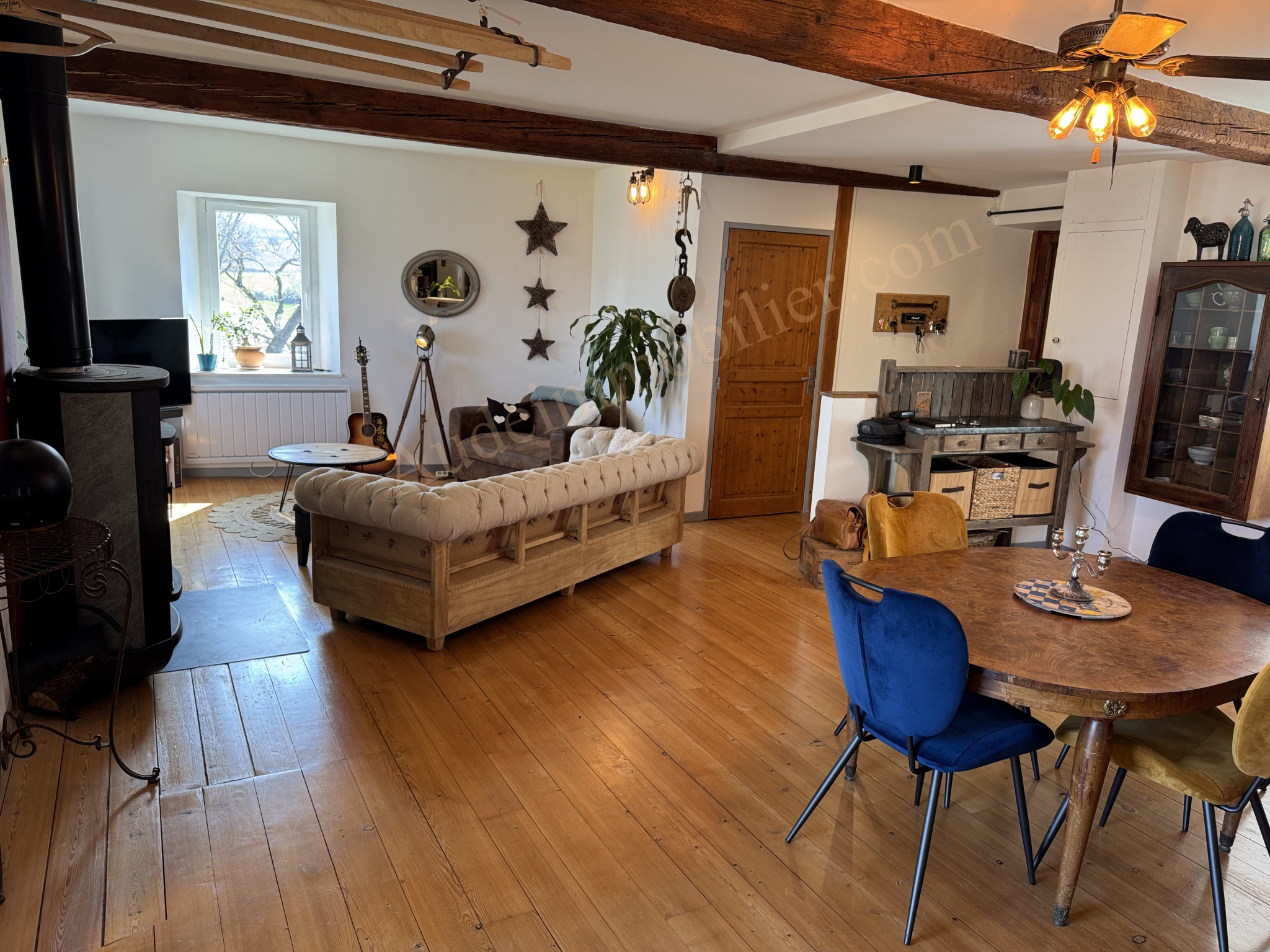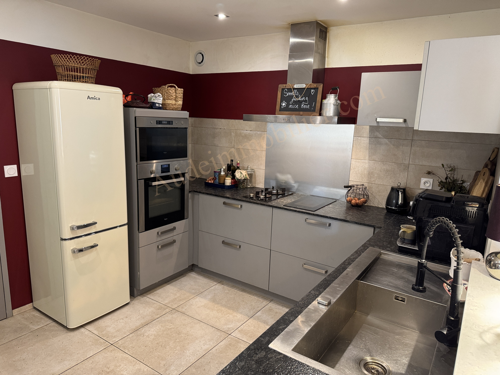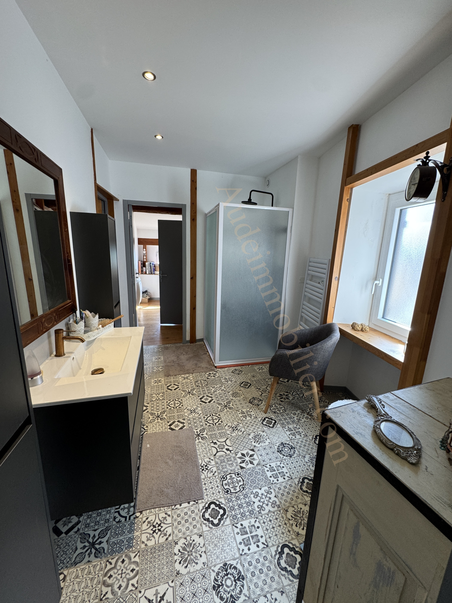 Située dans un village à 15 min. Carcassonne, ville touristique et de son Golf, grande maison en pierres avec jardin, gîte, garage et piscine bâtie sur une parcelle de 704 m². D'une surface habitable de 197,55 m², elle se compose de : un séjour / salon / cuisine aménagée de 50 m² avec poêle à bois et avec terrasse de 20 m² et le jardin, un cellier, un WC, un couloir, un placard, une chambre en suite de 22,35 m² et une salle d'eau. Au 1er étage : une chambre de 21,13 m², un placard, une salle d'eau, une chambre de 15,7 m² avec balcon, un bureau, un espace détente de 14,87 m², un WC avec lave-main, escalier menant au rdc : une bibliothèque de 21,4 m². Dans le jardin : un gîte avec au rdc : une pièce de vie de 19,6 m², une salle d'eau, une mezzanine de 18,8 m² au sol ( 9,68 m² en loi carrez). Un espace de rangement de 18,8 m² au sol. Un garage / remise de 45 m² à usage de local technique pour la piscine avec WC et four à pain.