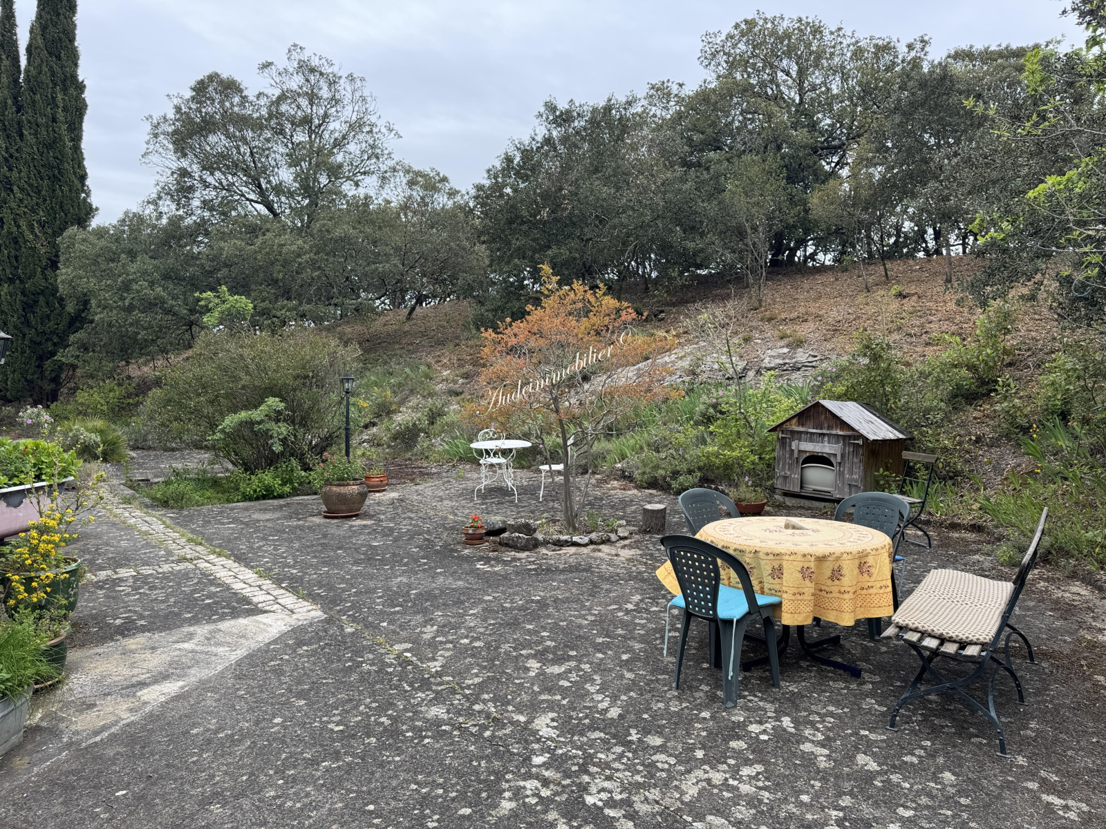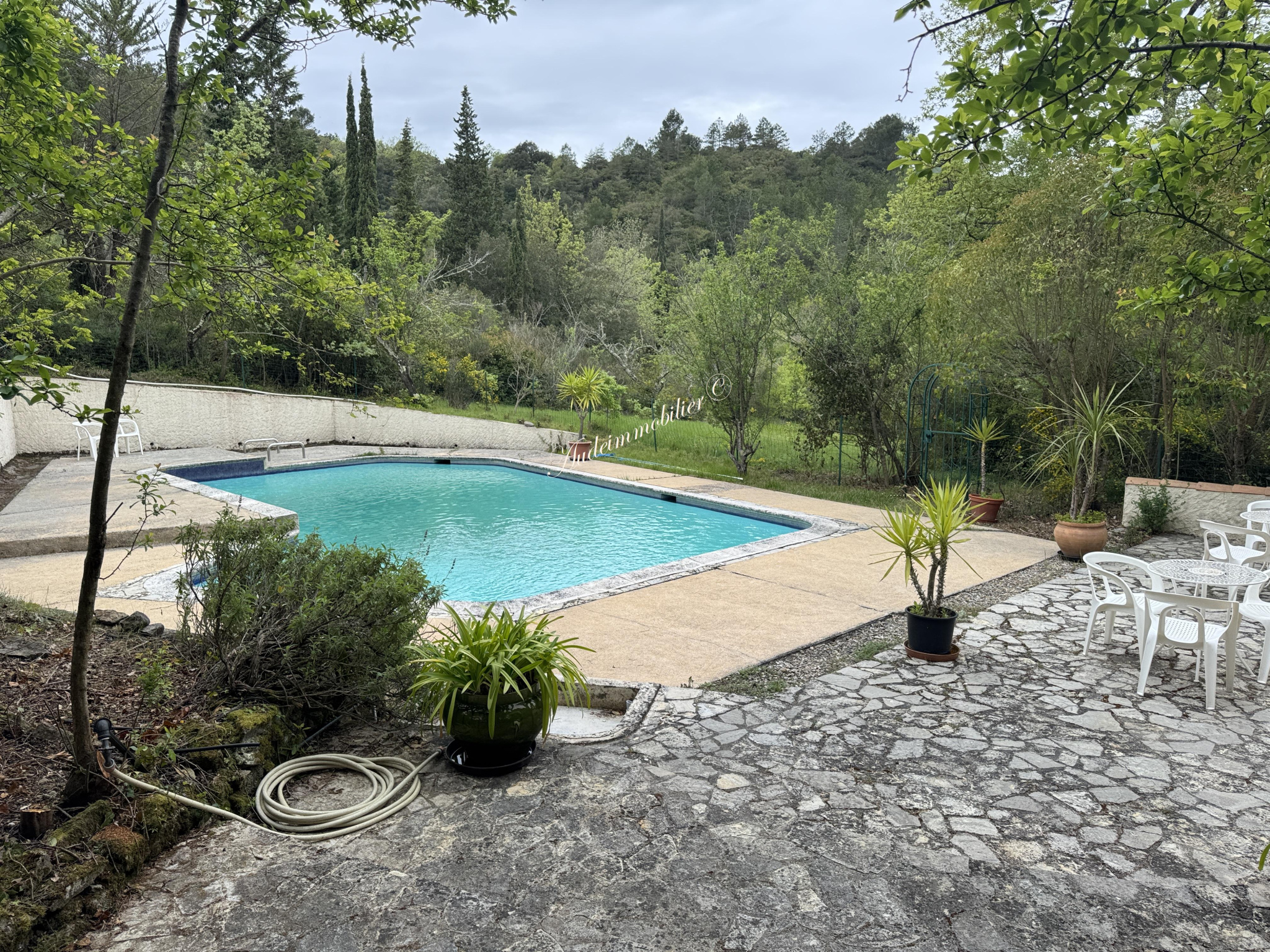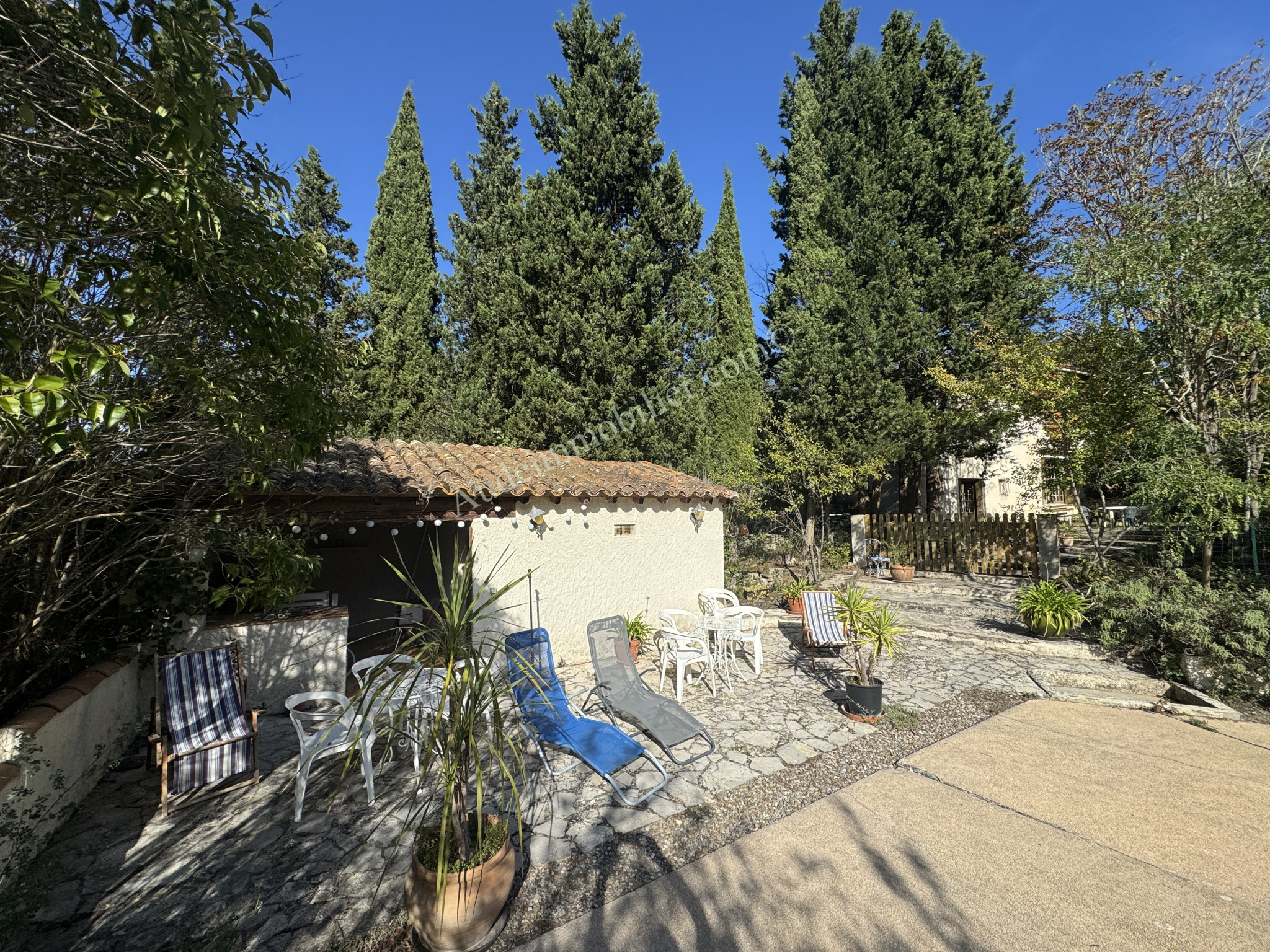 A l'extérieur : 3 gîtes séparés de l'habitation : Lavande, Romarin et Thym, un 4ème gîte attenant à la maison "Acacias", une piscine, un cellier de 17,6 m², un atelier / hangar de 63,4m², une cabane à outils