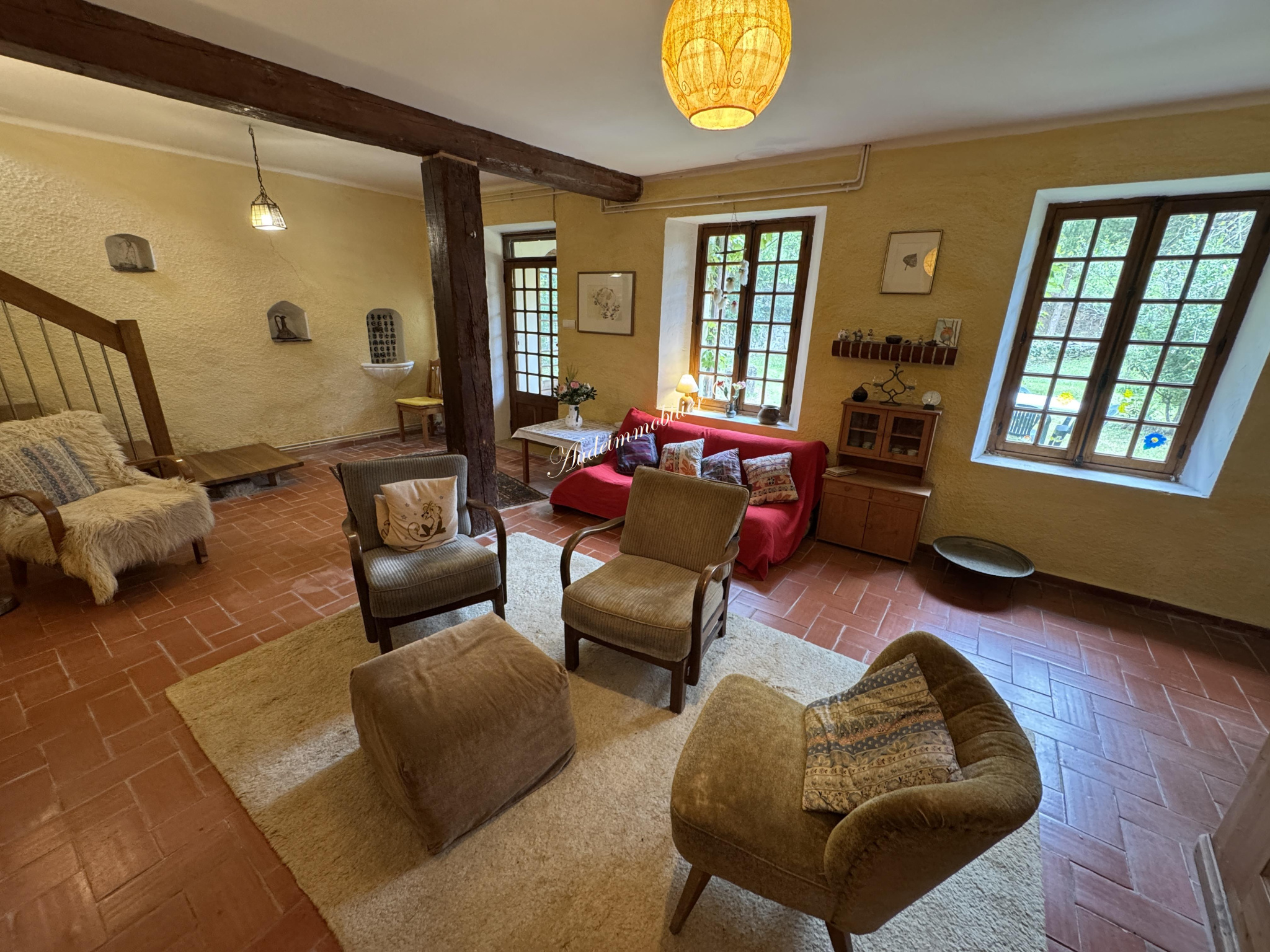 Située dans un environnement calme et boisée, à 10km du village de Leuc et à 15km de la ville touristique de Carcassonne, propriété composée d'une habitation principale, de 4 gîtes et une piscine bâtis au coeur de 24ha boisés. D'une surface habitable de 172m², la maison se compose de : Au rez-de-chaussée : un hall, un salon de 34m² avec cheminée, un séjour / salon de 42,67m², une cuisine aménagée de 15,2 ouvrant vers une terrasse, une arrière cuisine, une salle d'eau avec WC. Au 1er étage : une mezzanine de 13,51m² avec placard, un couloir, une chambre de 9,1m², une chambre de 15,3m², une chambre de 18,9m², une salle de bain avec WC.