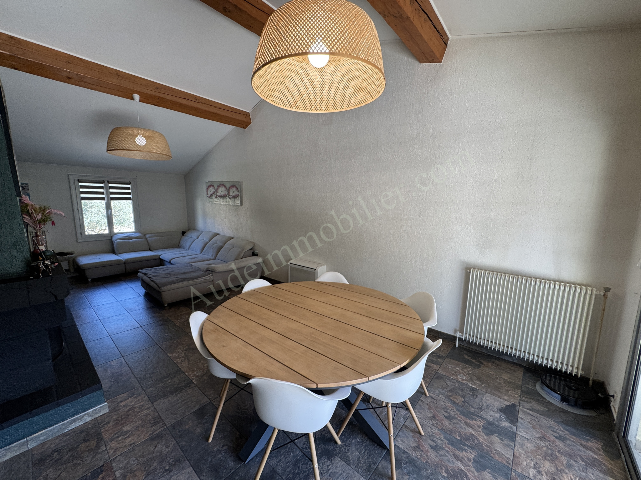 Située dans village proche de Couiza et d'Espéraza et de leurs commerces et service, maison avec deux grands garages et jardin batie sur une parcelle de 1150m². D'une surface habitable de 97,8m², cette maison se compose de : Au 1er étage : un séjour / salon de 32,6m², une cuisine aménagée et équipée de 10,45m², un hall, un hall avec placard, une chambre de 10,8m², une chambre de 9,19 m², une chambre de 9,94m² avec placard, une chambre de 9,97m² avec placard, une salle d'eau, un WC. Au rez-chaussée : un garage de 58m², un WC, une buanderie, une chambre de 9,43m², un garage de 44m², des rangements.