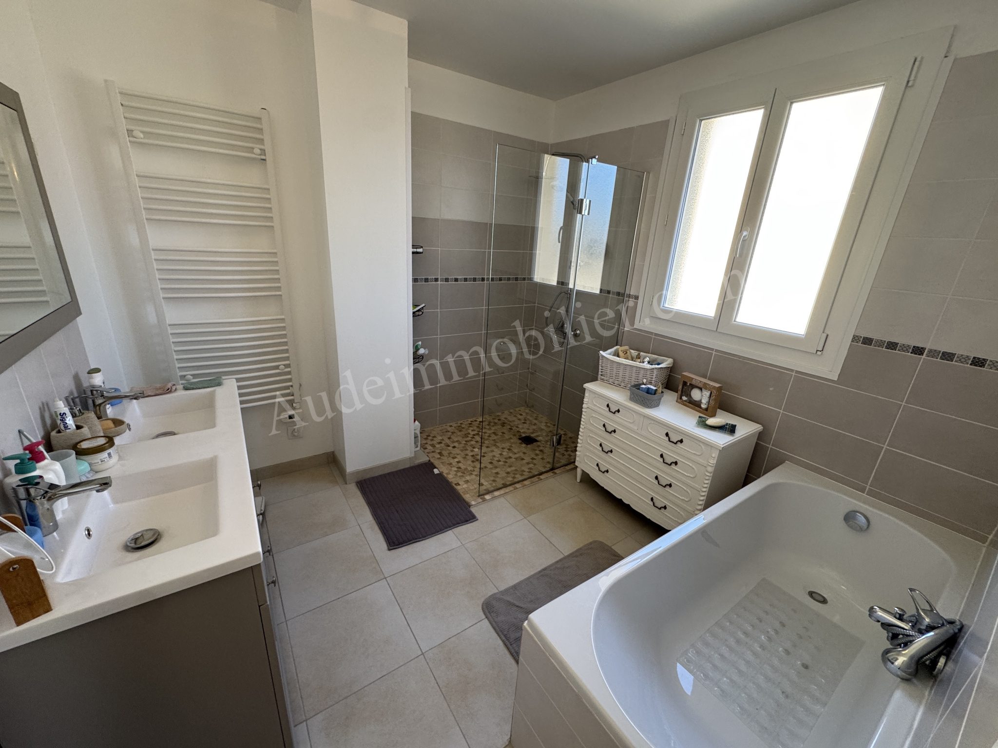 Située dans une commune de la Haute-Vallée de l'Aude avec commerces et services, maison rénovée, avec garage et jardin. D'une surface habitable de 135m² environ, cette maison se compose de : Au rez-de-chaussée : une entrée, une chambre de 11,7m² avec placards, une chambre de 12,3m² avec placards, un WC, une cuisine d'été de 8,46m², un garage de 28,5 m² avec une salle d'eau / buanderie. Au 1er étage : un salon / séjour / cuisine aménagée et équipée de 41,9 m², unechambre de 9,3m² avec placards, une chambre de 12,3m² avec placards, un WC, une salle de bain avec une douche.